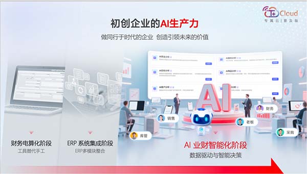 當AI從概念走向“落地”,小微企業(yè)的管理需求也在升級:不僅要能用,更要“好用+智能”。T+Cloud專屬云普及版的更新,正是瞄準這一趨勢,把AI技術(shù)深度融入業(yè)財管理全流程,讓企業(yè)在“零硬件投入、零學習門檻、零復雜操作”中,快速擁抱AI數(shù)智化。